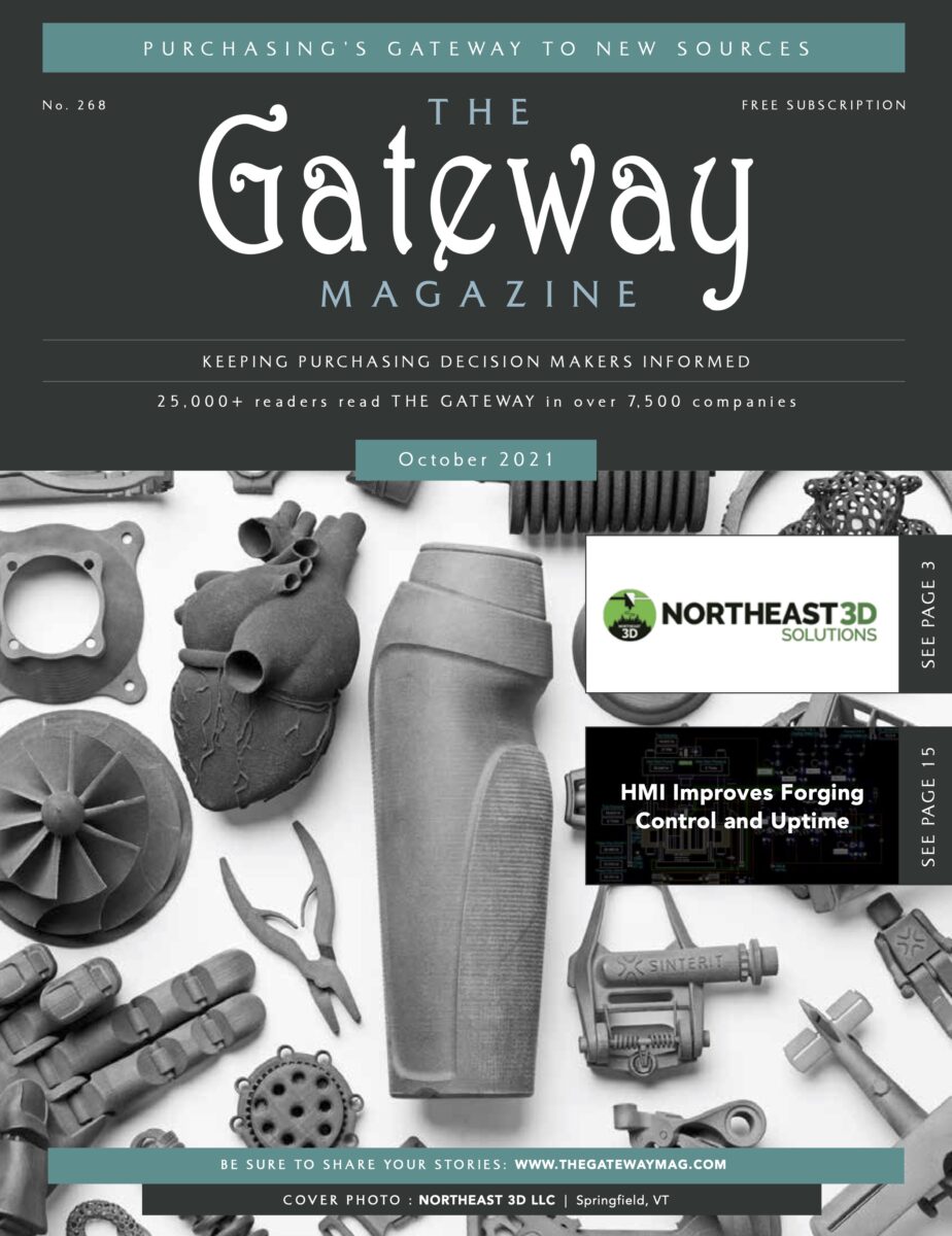 In this issue of the Gateway you’re holding in your hands, you’ll find a feature with our friends at Northeast 3D. It was interesting to learn more about the craft of 3D printing and scanning. What seems like the work of mad scientists is actually revolutionizing the manufacturing industry. 3D printing is quick, flexible, able to fill in some gaps of the standard job cycle, and, depending on the application, can be quite cost effective. It’s a good option for some amount of resource management and job functionality. So, check out Northeast 3D and get a better understanding of what 3D printing services can bring to the table, or, the production line, as it were…